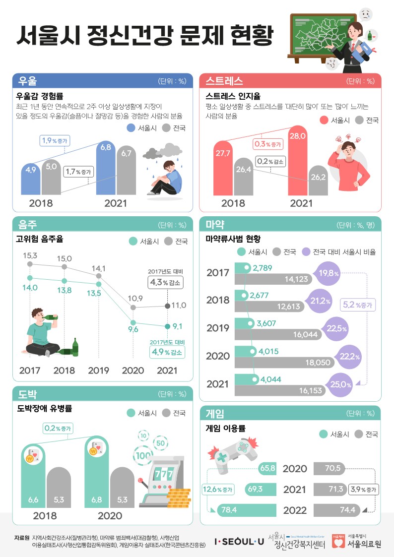 | 다음글 | [인포그래픽] 서울시 정신건강 문제 현황(청소년) |