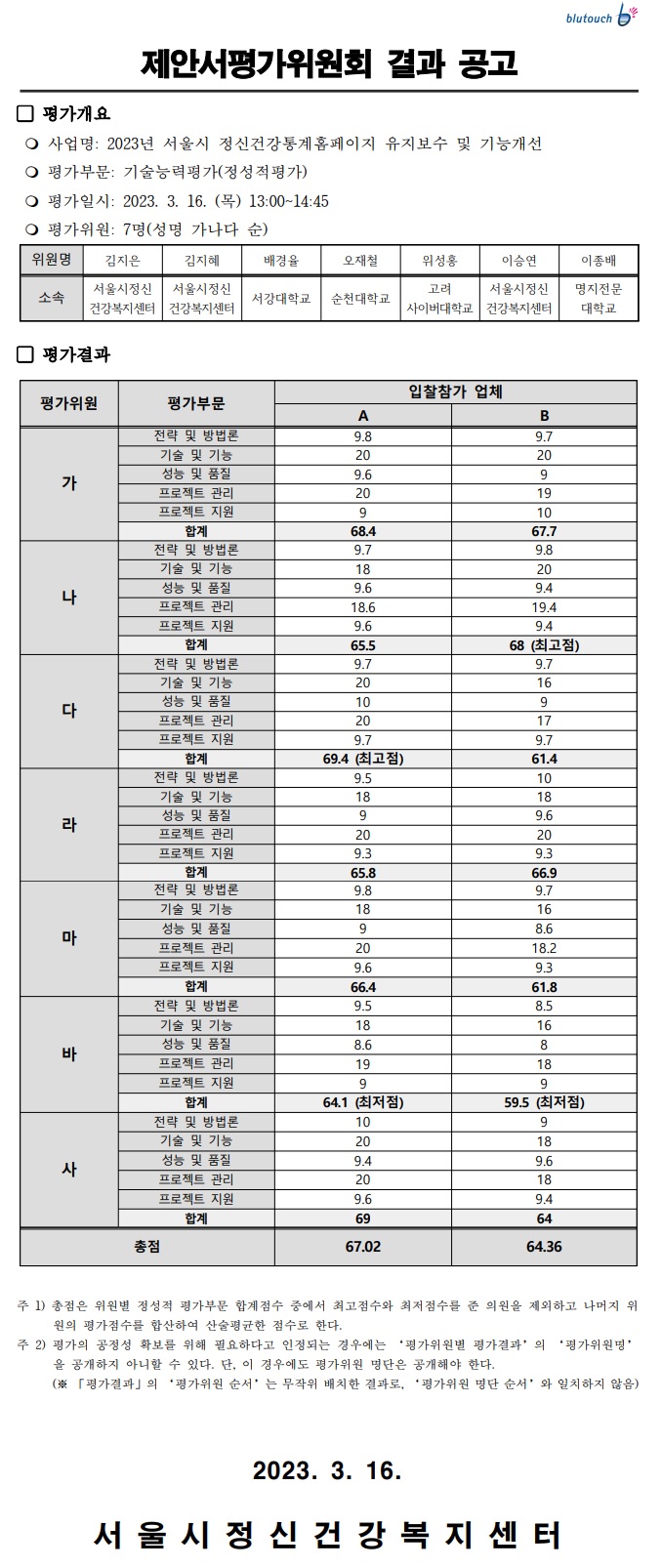 <2023년 서울시 정신건강 통계홈페이지 유지보수 및 기능개선 제안서 평가결과 공개>